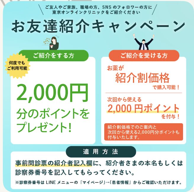 紹介キャンペーンは私にも次回ピル購入に使えるポイントがもらえて、私も使ってくれたみんなも超お得です!